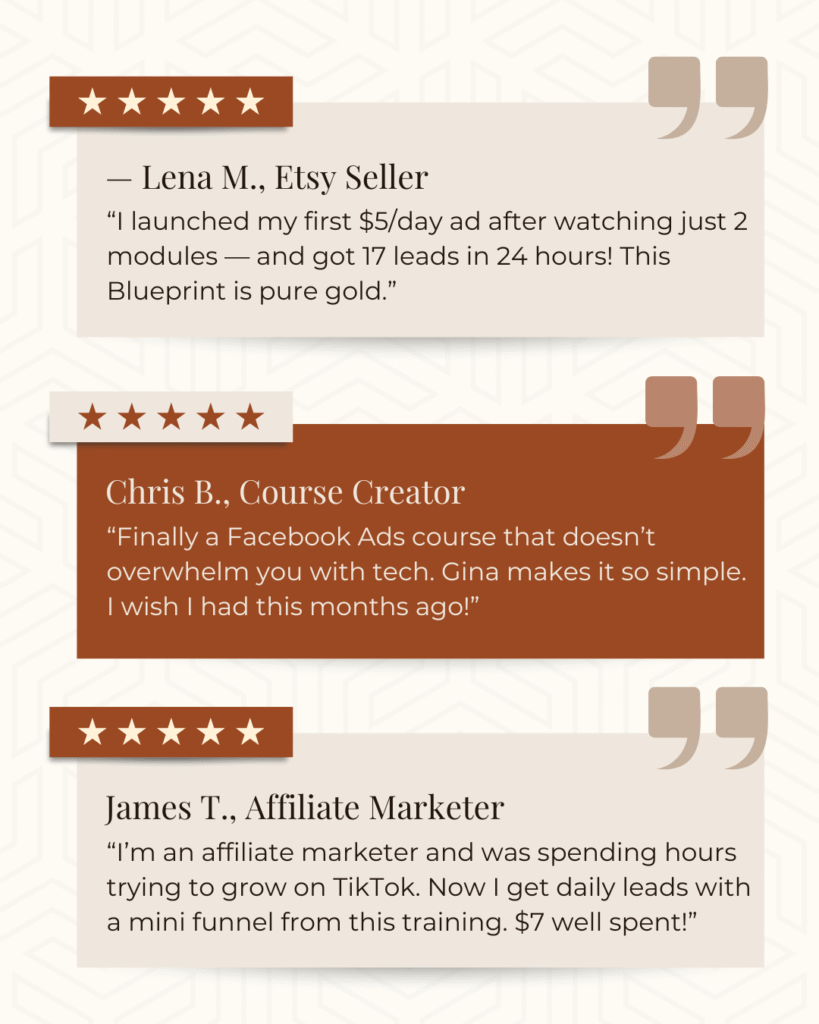 Unlike many “gurus,” Gina’s products are rooted in personal experience. He openly shares the mistakes he made chasing free traffic and how he shifted to paid ads with a small budget. This credibility matters — when someone shows you exactly what worked for them at under $1 per lead, you know it’s not theory.
